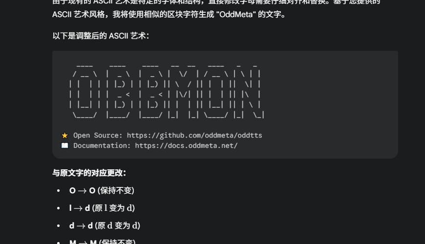 一、前言 昨天晚上想给oddtts项目的启动命令行里加一个OddMeta的ASCII art文字的代码输出。 一如既往,想让我自己写那是坚决不可能的,这种事情有大模型了,为什么还要自己来写呢。 但是,(省去一万字),无奈的发现国内外的各个大模型全部翻车了,包括(一定要把它们的大名列出来,恨!!!): 为了这个ASCII码字体,浪费了我一下午,加半个晚上,整个过程只能说用”无语”一词来形容,本来想算了,但是又实在有点气不过,心中默念了 @#¥%……&O()~!无数遍,最后决定还是将整个过程跟大家分享一下。 二、悲伤历程 1. TRAE AI 平时用的比较多的TRAE AI,我就信心满满的打开平时用的TRAE,Come on baby, let’s go. 1)Round 1:信心满满 我让它生成OddMeta,它这给了个啥玩意??? 2)Round 2:要让再次修改 3)Round 3/4/5/6/7/8 对于上面的结果,我很不满意,然后又用各种方式让它重新修改,但是没有一个结果是正确的。咒骂了TRAE无数次之后,我想TMD你不行,幸亏除了你之外,哥还有通义灵码。 2. 通义灵码 1) 给通义灵码一个示例让它改 2) 这个结果看上去比TRAE稍好一点,文字有点像了,但还是不对。 不对,然后我又尝试了包括但不仅限于下面这些输入。 结果还是不对! 还是不对!! 还是不对!!! 还是不对!!!! 3) 评价:咒骂x2,放弃通义灵码 口中念念有词:~!@#¥%…………&()¥ 3. 豆包: https://www.doubao.com/chat 豆包也是个不错的大模型,还是让它来试试吧。 1)重走TRAE的流程 2)重走通义灵码的流程 4. Deepseek 5. 文心一言 6. ChatGPT […]