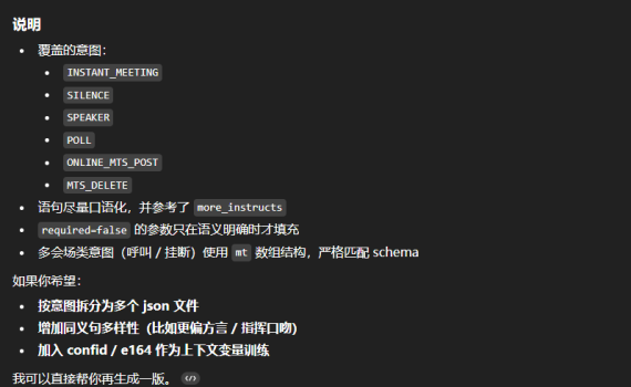 一、前言 前阵子写了几篇大模型开发相关的入门的文章,然后有同学私信说自己训练或者微调出来的模型效果不如预期,对于这一点,我在前面的文章里也反复强调过多次,对于大模型来说,唯一真正有价值的只有:数据。脸书扎克伯格花大价钱ScaleAI的底层逻辑也在于此。 在现在这个时代,完全可以说,大部分的技术都是没有什么价值的,因为大部分的技术都是有手就行。真正的价值都在数据,而且最有价值的数据往往都是一个个的专业领域的数据,决定大模型微调效果的是数据,决定你整个产品成败的也是数据,这个事情一定要搞清楚。所以呢,建议大家从现在开始,给自己好好做积累吧,把你的行业数据、专业领域的数据一点点积累好,这才是你的未来。 而数据中最重要的还是实际的业务数据,并不是让大模型帮你生成的数据,但是如果你是为了做一些项目的测试的话,让大模型来帮忙丰富一下你的数据集也是一个不错的选项。这里就用我自己的一个实际的用于语音助手的案例,来手把手教你如何利用大模型来帮你生成一些数据。 【有手就行】大模型开发入门系列 二、让大模型帮忙生成训练集 之前用的更多的是利用ChatGPT来生成数据,但是为了写这篇文章,我又专门用千问、文心、豆包、ChatGPT走了一遍完整流程。这篇文章主要有用的就是生成数据的提示词,顺便用这个实例介绍对比一下几个主流模型的表现,供大家参考。 从这一轮次的的测试生成数据集的情况来看,印象分最好的要算Qwen3-Max,而ChatGPT则垫底了。看来中文还是得选中国的大模型。另外,犹记当年第一届世界人工智能大会时,马云跟马斯克吹牛:AI就是Alibaba Intelligent,这牛吹的当年所有人都想笑,再过几年看看Alibaba到底能不能笑傲江湖,让咱们座目以待。 此外,具体每个大模型生成的数据由于太大,在这里我就不列了,不过我保存到了云盘,感兴趣的可以后台私聊我:【测试集】,会自动回复下载链接,同时你也可以自行生成。 1. 千问 使用模型:Qwen3-Max 秒级响应。刺溜一下就给生成好了。而且是一步到位,不像豆包、文心那样,先生成数据,再自己写代码把数据保存到一个json文件。千问牛逼格拉斯。不过,生成的json文件在公司不能下载(在家里正常),可能跟公司网络DNS有关。 生成的文字多样性佳: 2. 百度文心一言 使用模型:文心大模型X1.1 为每个意图生成50条数据很快,但是文心一言为了将结果保存到json文件费了老大的劲,因为它是自己写代码来实现的,而它写的代码执行的报错了好多次,然后它自己一直在改它自己的代码,结果浪费了很多时间,XD 生成的文字多样性: 但是它在这个请求里自己生成的代码出问题,扣掉了我对它的印象分。 3. 豆包 使用模型:豆包上没写版本号,公有云的反正是最新的。 豆包-同文心,也是自己写代码生成json,比百度好一点,保存json的代码一次成功,没有改半天代码。生成的文字多样性也不错。槽位的准确率100%。它相比文心好的地方就是保存json的代码一次成功,没让我等半天。 生成的文字多样性: 4. ChatGPT 使用模型:普通版本(非Business版本) For quick tasks & answers 速度跟豆包差不多。思考过程在生成后不能查看,所以不清楚是跟千问一样,一步到位,还是跟豆包、文心一样,先生成数据,再写代码存文件。 生成的文字的多样性: 三、注意事项 如果你生成数据的目的是为了训练的话,建议的做法还是要用一些实际的数据,而不是找大模型来帮你生成数据,这一点很重要。但是如果你是为了学习大模型训练或者大模型微调的话,可以考虑让大模型帮你生成一些数据,但仅限于学习。毕竟,大模型生成的数据都不一定是真正你的产品、业务所需要的数据。 四、广而告之 新建了一个技术交流群,欢迎大家一起加入讨论。扫码加入AI技术交流群(微信)关注我的公众号:奥德元让我们一起学习人工智能,一起追赶这个时代。