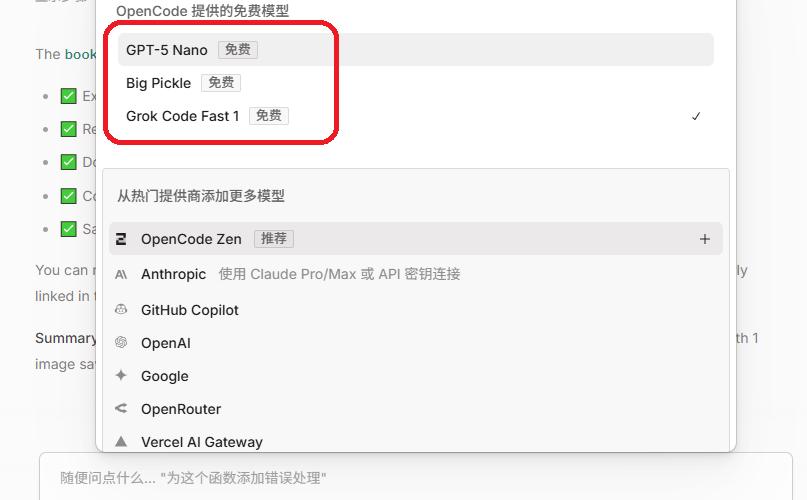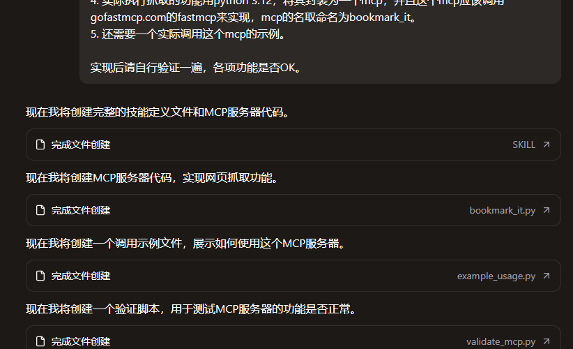 一、前言 上周扣子成为第一个支持skills的国内的大模型,但是这阵子公司这边的事情一直很忙,项目急,领导们都盯着,所以一直没有没时间去测试。 但是事实上之前我已经用open code desktop试过来实现一个skills,只是文章写了一半,一直没发,今天晚上再重新整理了一下,让open code实际来写一个skills,并将完整的过程给大家做一个演示,相信看了之后,任何一个小白(不需要编程知识)都可以来实现自己想要的功能了。 我一直想给小落同学做一个书签功能。原因如下: 当你看到一篇好文章,想保存下来慢慢看,结果网页上广告横幅、导航栏、推荐阅读啥的占了一大半空间。等到真正想看的时候,还得翻半天找正文。更烦人的是,现在很多网站都是单页应用,用JavaScript动态加载内容。直接用浏览器保存或复制粘贴,往往只能拿到个加载动画,完全看不了内容。于是我就想,能不能做一个工具,自动抓取网页,去掉那些乱七八糟的东西,把正文提取出来,保存成干净的Markdown格式?图片也能一并保存下来。 现在刚好用OpenCode Desktop来演示一下,如何实现一个书签功能的Skills,而且可以通过MCP协议接入外部服务。 二、测试运行环境 1. 测试环境 依旧在我这个超过十年的老笔记本上,我的操作系统是Windows 7。如果你是新版本的Windows,或者是Mac OS,或者Linux,整个流程基本上也没什么差别(理论如此哈,我还没验证过,若真在安装使用open code时,有什么问题也可提出来)。 2. 测试使用的版本 Open Code Desktop 的下载安装我就快速跳过了,大家随便哪儿搜一下都能下载到。 安装完成OpenCode Desktop后,启动,完成基础登录 / 初始化配置,比如:选择使用的大模型。 三、从零开始实现书签功能Skills 1. 给OpenCode的提示词 直接在OpenCode Desktop里,告诉他你想要一个什么样的东西,一些具体的要求。 注:这里的描述很重要,而且最好是描述能够一次成型。但是实际上一次成型是不可能的。不过你可以生成一次后,看下效果是否跟你预期一致,如果不一致,那就直接左上角:新建会话(+ New session),然后再一步步完善你的描述,然后一次次重试直到你基本满意。 以下是我的提示词: 2. OpenCode Desktop的输出 输入提示词之后,OpenCode就开始工作了,大概等待了两三分钟,它给我输出了一个结果,同时也创建好了整个书签Skills,书签的MCP Server:bookmark_it_server.py,以及这个MCP Server的Python依赖,具体项目目录结构如下: 3. 关键代码 1)MCP服务器配置 代码位置: .opencode/opencode.json 2)MCP服务器主要代码 代码位置:bookmark_it_server.py 3)Skills配置 […]