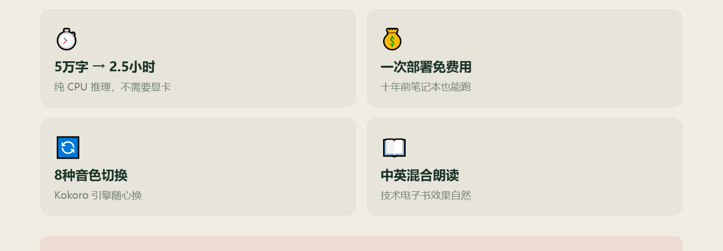 一、先看效果 你有一本 10 万字的技术电子书,想把它变成有声书。不是那种机器感很强的合成音,而是自然流畅的人声。 把文本拖进去,点一下开始,然后去喝杯咖啡。回来的时候,一本完整的有声书已经躺在你的文件夹里了。 这不是科幻,这是我真做出来的功能。 实测效果: 二、什么是 OddTTS? OddTTS 是我之前开源的语音合成 API 封装项目。 两个特点:多引擎、低成本。 多引擎:支持 Kokoro、MeloTTS、Edge TTS、OpenAI TTS 统一调用。 低成本:Kokoro 可以在十年前的老笔记本上跑,纯 CPU 推理,一次部署无限使用。 以前做有声书,要么买云端 API(一本书几十块),要么自己部署大模型(需要显卡)。 现在一台几百块的 CPU 机器就能跑,还免费。 三、用 oh-my-openagent 实现的全流程 这一节讲讲我怎么做这个项目。 3.1 第一步:需求分析 用的 Agent:Metis(预规划分析) 直接跟 oh-my-openagent 说”我想做一个有声书功能”,它会调用 Metis 帮你分析: Metis 分析的结果: 3.2 第二步:制定计划 用的 Agent:Prometheus(任务规划) Prometheus 会制定详细的实现计划: Prometheus […]
