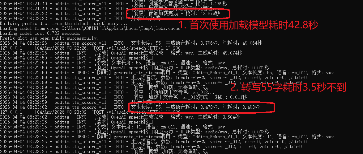 上个星期分别测试了一下两个轻量级的语音合成模型,分别是: 其中Kokoro以更低的CPU要求,可完美达成我的小落同学项目的实时语音交互的需求,因此现在我已经将我的小落同学的主打语音合成在OddTTS上切到了kokoro v1.1。 这里要特别感谢一下一位大佬:路遥。因为前面我以为Kokoro不支持中英混合,所以一开始是准备用MeloTTS的(对CPU要求相对较高),在他的提示下才发现原来Kokoro也可以通过将创建英文和中文两个pipeline来实现中英混合。 以下是一些相关的介绍。 一. 安装 OddTTS 二. 启动 OddTTS 在命令行中输入下面的命令即可启动: 启动后,浏览器打开地址:http://127.0.0.1:9001 启动后,浏览器打开地址:http://your_ip_addr:8080 注: Linux/MacOS: 三. 使用 OddTTS OddTTS支持自定义协议的API,也支持OpenAI兼容接口的API,一般用户建议用OpenAI兼容接口来使用,三行代码搞定语音合成。 其他的API接口可以看OddTTS项目的API接口说明。 四、一些测试数据 1. 合成的语音的效果 合成的语音的效果可以看我之前的测试文章: 正常语速wav格式正常语速mp3格式3倍语速mp3格式 2. 合成的速度 这个是在我的这台十年前的老笔记本上跑的数据: 注:这个3.5秒可认为是首字时延,后面由于合成的速度比播放的速度要快得多的多,所以在长文(需切句子)合成的情况下,实际体验的时延可以做到趋近到500ms以内。 具体如下图所示。 3. 切换不同的TTS模型/引擎 OddTTS有集成了多种不同的TTS模型,包括: OddTTS提供了一个简单的管理、测试界面,在启动了OddTTS后可以在浏览器里打开oddtts,然后动态切换TTS模型/引擎。 五、注意事项 模型下载问题 Kokoro的模型放在huggingface.co上,在国内访问存在问题,解决方案: set HF_ENDPOINT=https://hf-mirror.comset HF_HOME=F:/ai_share/models export HF_ENDPOINT=https://hf-mirror.comexport HF_HOME=/opt/ai_share/models 输出wav正常,输出MP3报错 OddTTS的依赖里有加了ffmpeg,但是如果你机器上原先就有安装过ffmpeg有可能会报错,若是报错了,请再手动安装一下ffmpeg即可。 服务启动失败 语音合成失败 如何切换TTS引擎 输出格式 […]