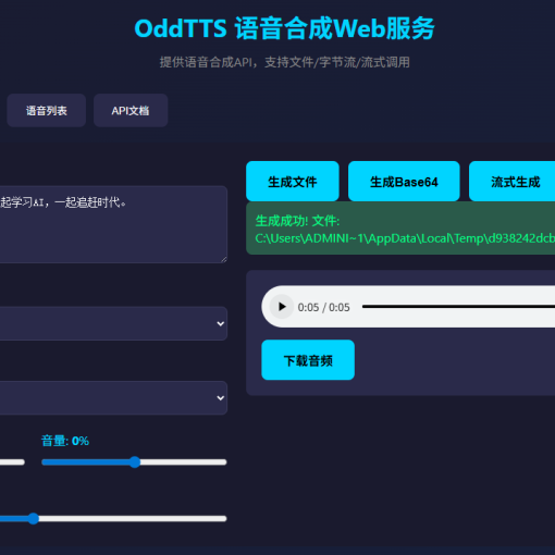 其他的API接口可以看OddTTS项目的API接口说明。