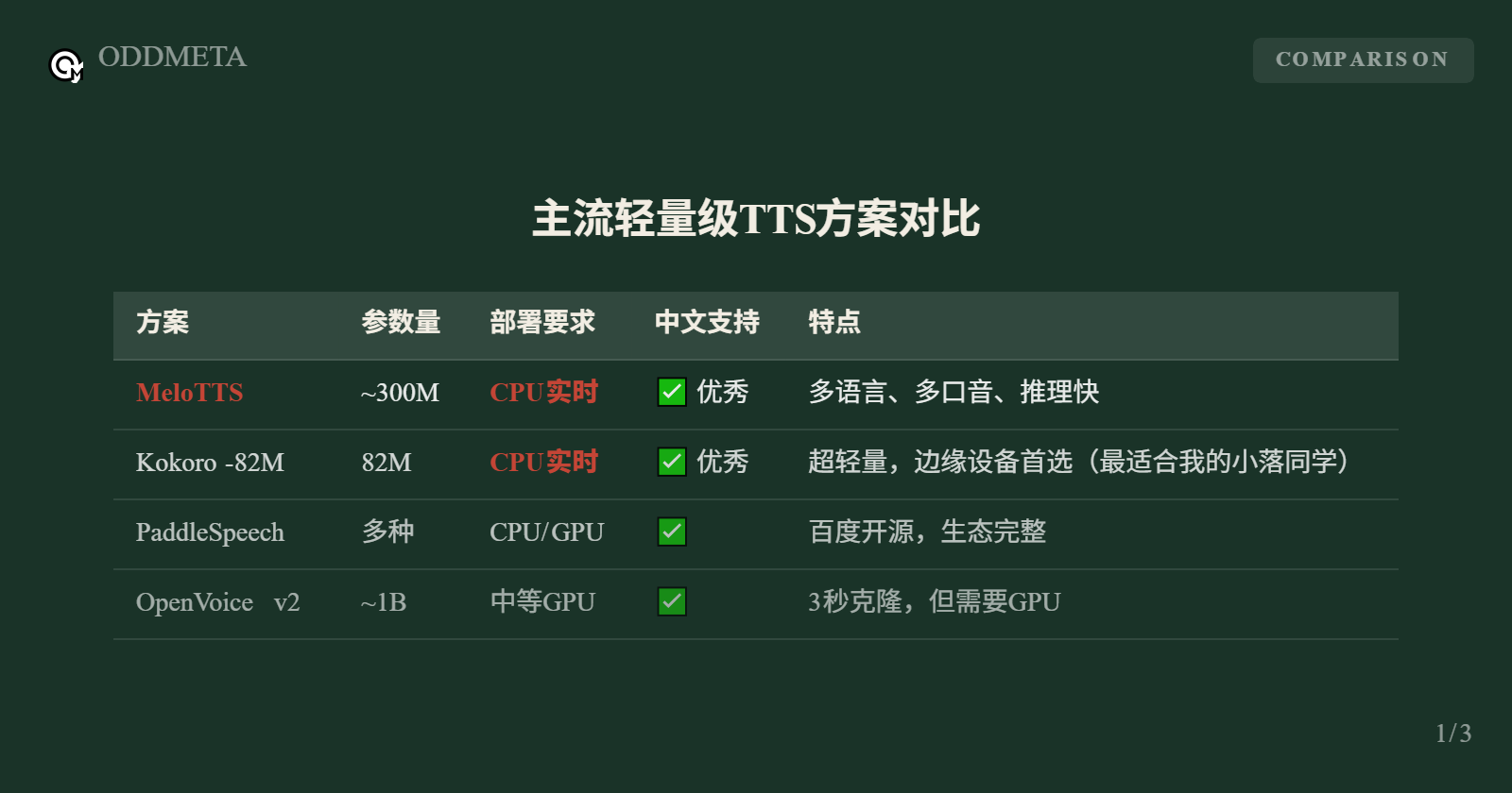 OddTTS有集成了多种不同的TTS模型,包括: