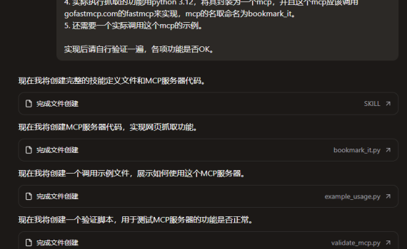 一、前言 昨天用OpenCode Desktop做了下书签管理的SKILL,今天就想去看看这个“早就想去看看的”、“国内第一个支持SKILL”的扣子。 于是,今天我就把昨天在Open Code Desktop上做的事情原封不动的在扣子上做了一遍。下面的完整的过程。 具体的SKILL的原理什么的我就不讲了,网上随处可见,咱们来实操。 为省流,直接上结论: 总的来说,单纯对于我这个书签管理功能来说,生成的SKILL的确还可以,但是SKILL描述和references还是需要自己仔细分析一下改一下。 除此之外,简单列一下我个人的一点经历和看法 也为扣子加一把油,为国内的开发者搭建了一个更好的平台和环境。 二、在扣子上创建skill 1. 创建skill 进入扣子网站( www.coze.cn ),输入提示词如下: 快速出了一个版本,但是自测验证报错,但是扣子会自己修改代码重测。a little monments later(约二十来分钟),终于完成。 2. 上传skill 作为一个懒人,只想动嘴,不想动手,所以第一个尝试是让扣子直接把它写好的这个skill安装到扣子上。 1)自动安装:失败 但是,扣子实际上只是给了一个帮助文档,还是让我自己上传安装。 那好吧,那我先下载一下扣子生成的skill及代码。 2)手动安装:成功 下载下来后,到扣子技能商店:https://www.coze.cn/skills?tab=my 然后点击右上角的“创建技能”,把下载下来的这个zip文件上传,扣子就会自动按照标准流程帮你适配这个 Skill。 但是扣子会将原先的 MCP 服务器实现重写为纯函数式工具,这说明扣子不会在上面自己开一个MCP Server来让Skill调用。 3. 部署Skill 点击右上角的“部署”按钮,跳过变量设定,秒级完成部署。 三、Skill的使用 通过上面的步骤,我的扣子版的书签管理Skill就完成了,并且可以直接在扣子上使用了。使用方法也很简单,在聊天框里输入 @ ,然后在跳出来的选项框里选择技能,技能列表里会包括所有你安装的和创建的技能列表,在那里选择“书签管理技能”。 四、进一步完善 希望收藏下来的文章的可以按我的要求来命名文件,保存的路径,以及图片的路径,那就让它再来改一下吧。 最后,扣子再输出了一版SKILL,并简单测试了一下包括新浪新闻,今日头条,CSDN,博客园,知乎等网站的文章都可成功抓取。收工! 五、完整代码 考虑到未来SKILL无限的可能性,我准备再建一个仓库,然后把一些自己实现的SKILL都放到这个仓库里。今天的扣子版本的书签功能的SKILL是第一个。 仓库地址: https://github.com/oddmeta/odd-skills 感兴趣的大佬可以直接到这里下载完整的代码。也可私信我,我发你。